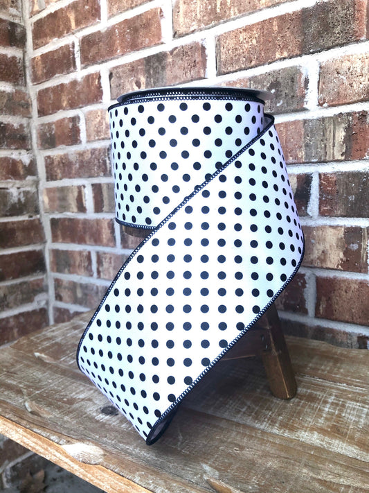 black and white polka dot ribbon, luxury ribbon, farrisilk ribbon