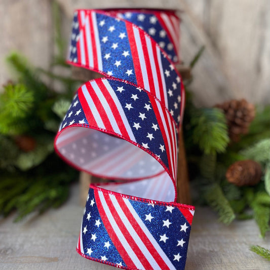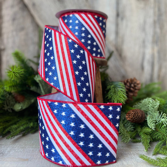 2.5" Stars and Stripes Patriotic Ribbon by Farrisilk, Patriotic Wired Ribbon, American Ribbon