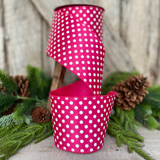 4" Hot Pink Mini Dots, Farrisilk Ribbon, Wired Ribbon