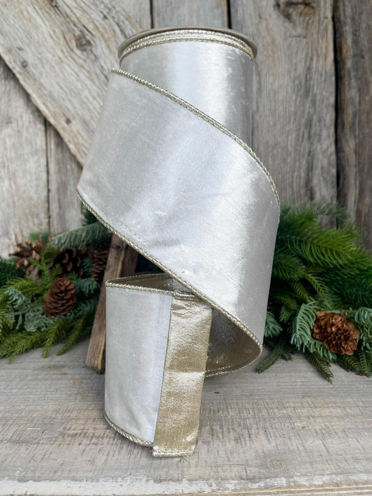 4" Satin Ivory Velvet Ribbon, Farrisilk Ribbon, Ivory Velvet Ribbon