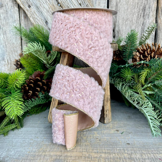 2.5” Pink Fur Wired ribbon, Farrisilk Ribbon, Pink Ribbon