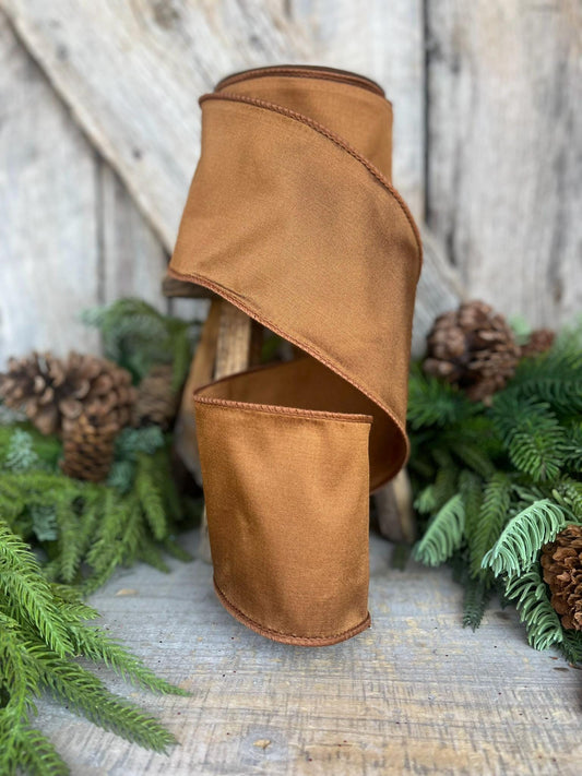 4” Pecan Brown Taffeta Ribbon, Farrisilk ribbon, Taffeta ribbon