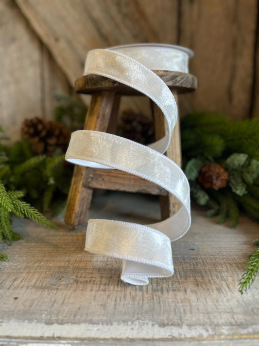 1.5" Cream White Flashy Velvet, Farrisilk Ribbon, Wired Ribbon