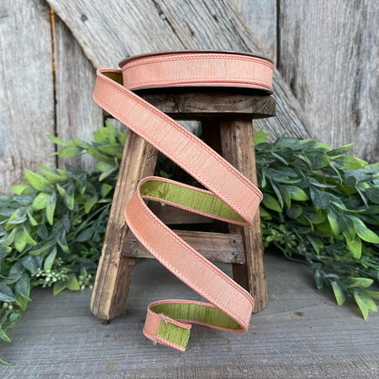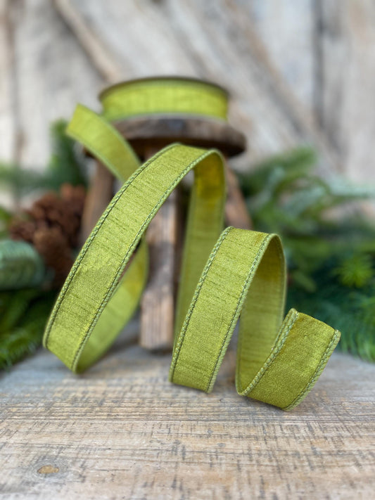 1" Olive Green Dupion Ribbon, Farrisilk Ribbon, Wired RIbbon