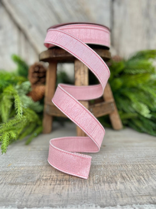 1” Rose Pink Dupion Ribbon, Farrisilk ribbon, wired ribbon