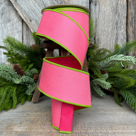 2.5" Pink Lime Green Ribbon, Farrisilk Ribbon, Wired Ribbon
