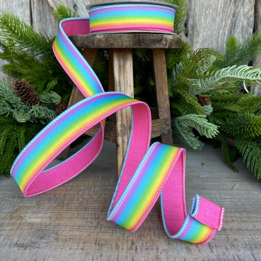 1.5" Rainbow Diagonal Stripe, Wired Ribbon, Summer Ribbon