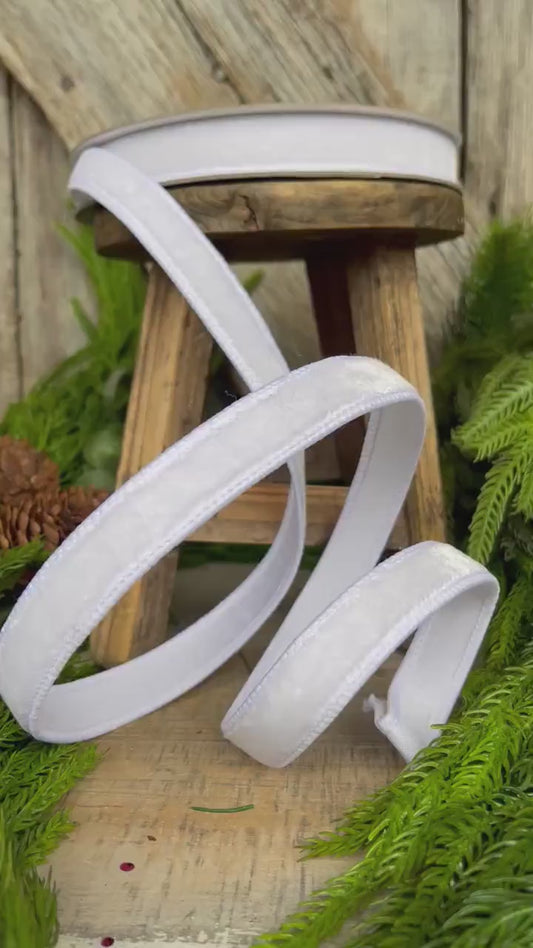 3/4" White Velvet Luster Wired Ribbon, Farrisilk Ribbon, Velvet Ribbon