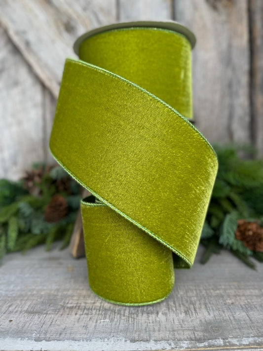 4" Lime Green Velvet Ribbon, Farrisilk Ribbon, Christmas Velvet Ribbon