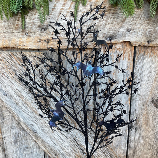 30" Black Bat Twig Floral spray, Halloween Floral Spray, Black Twig Spray