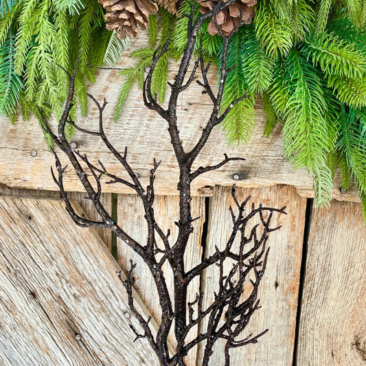 31" Black Glitter Twig Halloween Spray, Black Spray, Halloween Floral Stem