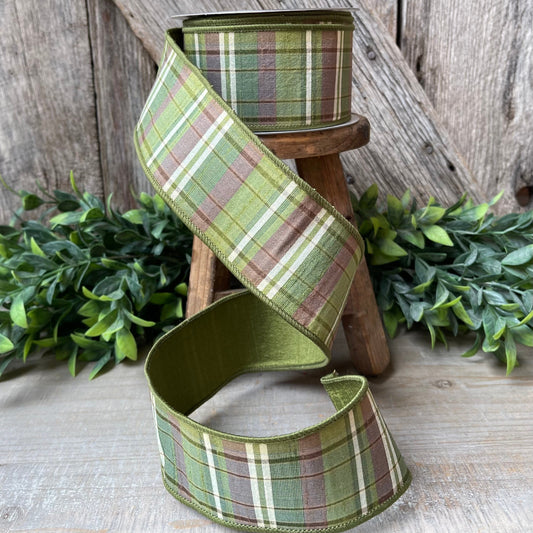 2.5" Green Plaid Ribbon, Woodsey Christmas Ribbon, Farrisilk Ribbon