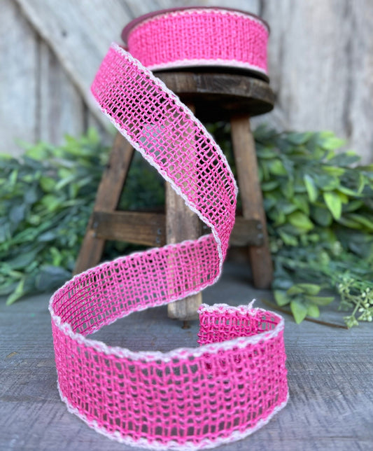 1.5" Pink Vibrant Weave Ribbon, Farrisilk Ribbon,Pink Burlap Ribbon, Wired RIbbon