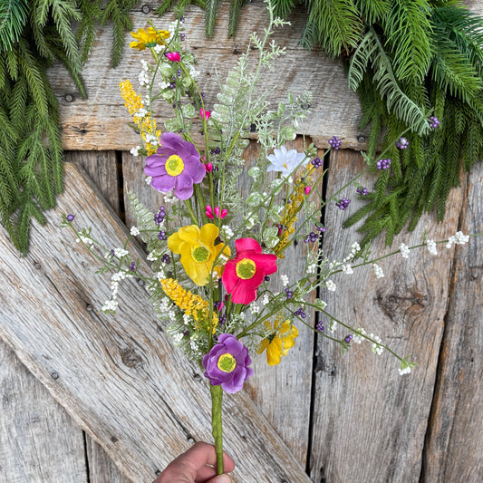 26" Mixed Wild Flower Bush, Floral Filler Spray, Spring Florals