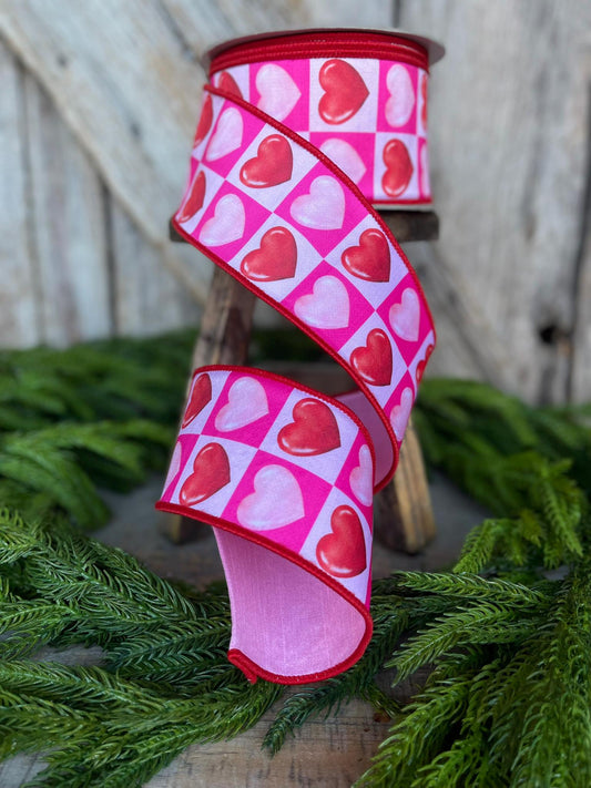 2.5" Heart Valentine Ribbon, Farrisilk Ribbon, Wired RIbbon
