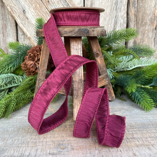 1” Wine Berry Dupioni Ribbon, Dupioni ribbon, wired ribbon