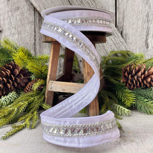 1.5" White Gemstones, Farrisilk, White Jeweled RIbbon