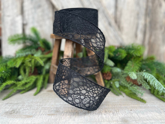 2.5" Black Cobwebs ribbon, Farrisilk Ribbon, Halloween Ribbon