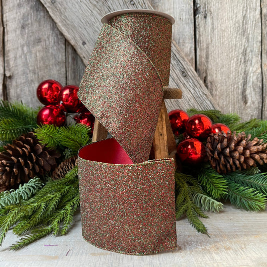 4" Ruby Emerald Diamond Dust by Farrisilk, Farrisilk Ribbon, Christmas Ribbon