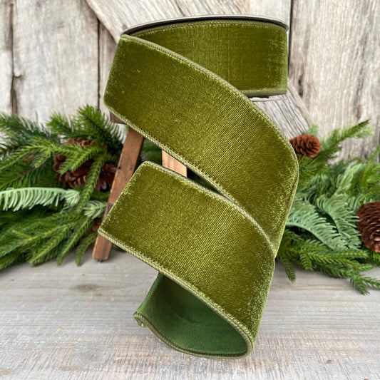 2.5" Forest Green Velvet Ribbon, Farrisilk Ribbon, Wired Ribbon