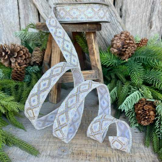 1" White Iridescent Marquise Ribbon, Farrisilk Ribbon, White Christmas RIbbon