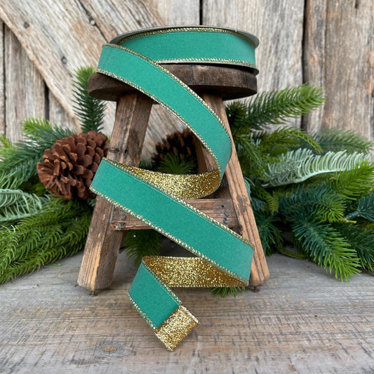 1" Teal Gold Gleam Ribbon, Farrisilk Ribbon, Wired Ribbon