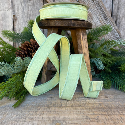 1" Mint Green Dupion Ribbon, Farrisilk Ribbon, Wired Ribbon