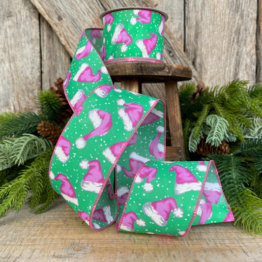 2.5" Pink Santa Hat Ribbon, Mint & Pink Ribbon, Christmas Ribbon