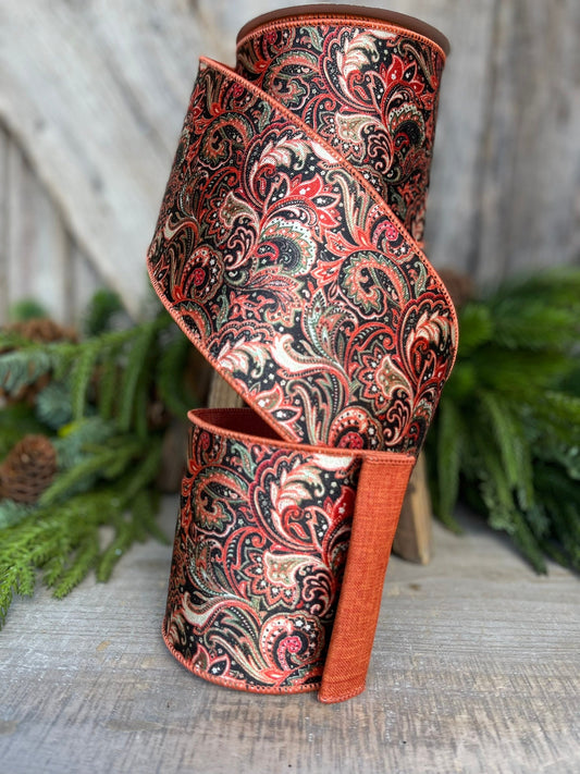 4" Amber Leaves Ribbon, Farrisilk Ribbon, Fall Ribbon