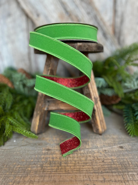 1" Lime Green & Red Ribbon, Farrisilk Ribbon, Green Red Fusion Ribbon