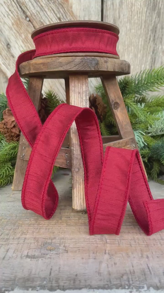 1” Deep Red Dupioni Ribbon, ribbon, wired ribbon