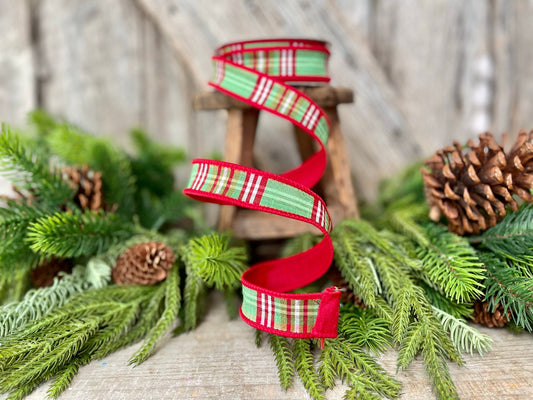1" Red Green Plaid Ribbon, Christmas Tree Ribbon