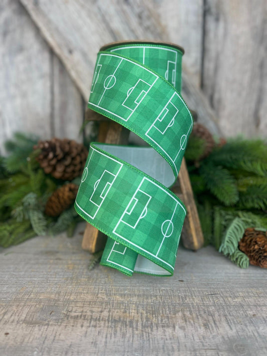 2.5" Soccer Field Wired Ribbon, Soccer Ribbon, Sports Ribbon