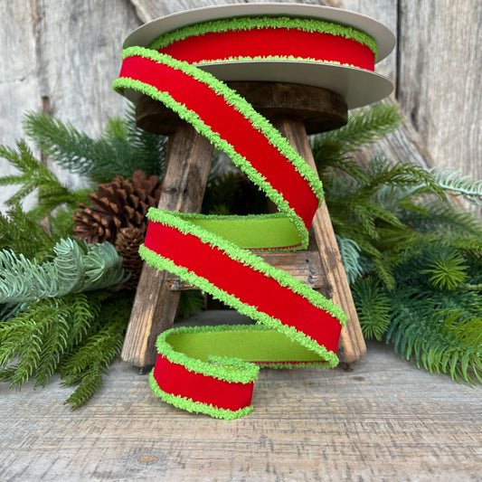 1" Red Lime Green Ribbon, Farrisilk Ribbon, Scrooge Trim Ribbon