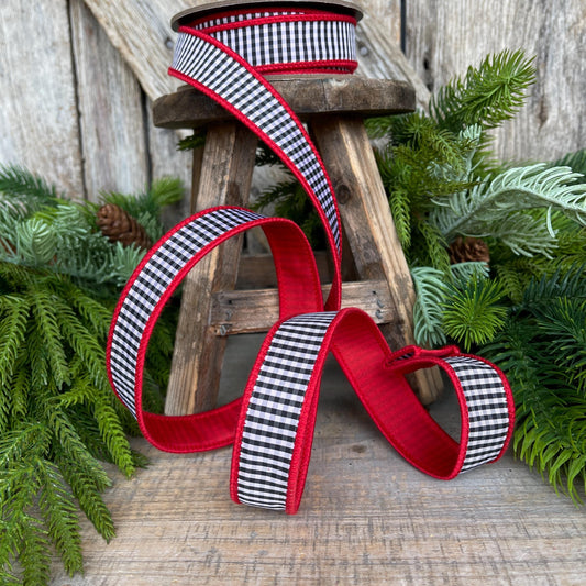 1" Red & Black White Mini Checkered Ribbon, Check Ribbon, Narrow Ribbon
