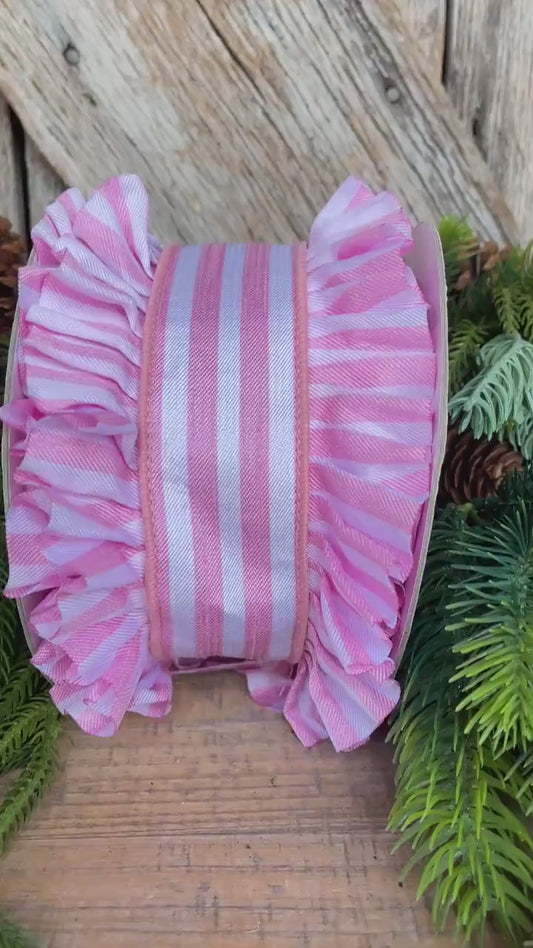 4.5" Pink Ruffle Ribbon, Farrisilk Ribbon, Pink Candy Wrap Ruffle