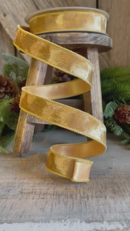 1" Gold Silken Velvet Ribbon, Farrisilk Ribbon, Wired Ribbon