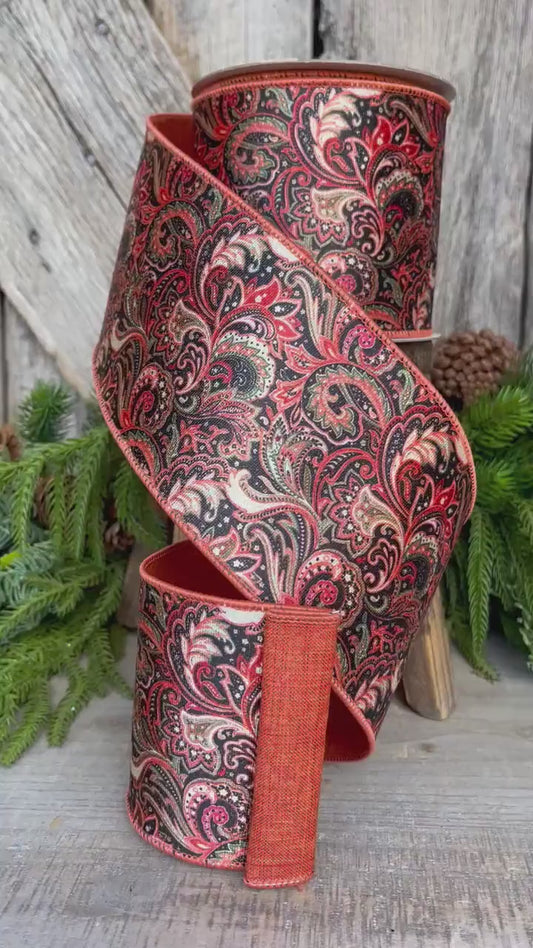 4" Amber Leaves Ribbon, Farrisilk Ribbon, Fall Ribbon