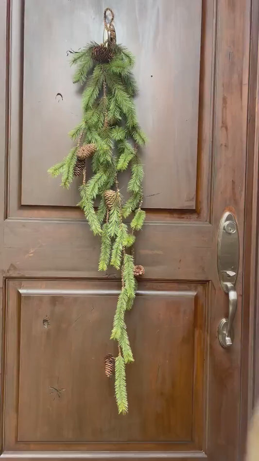 48" Long Needle Pine Hanging Swag, Christmas Pine Swag, Pinecone Swag