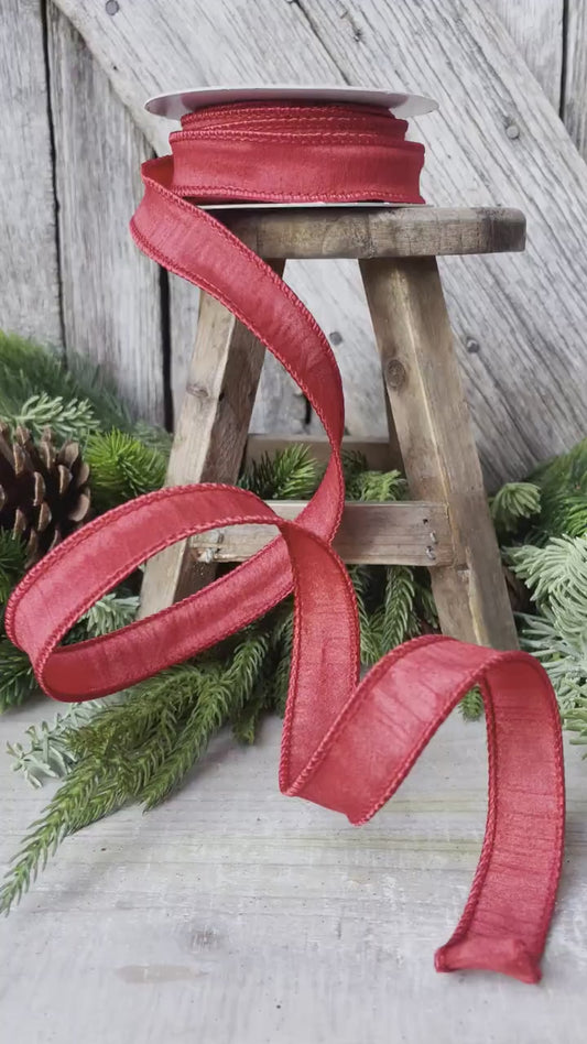 7/8" Wired Ribbon, Red Ribbon, Dupioni Ribbon