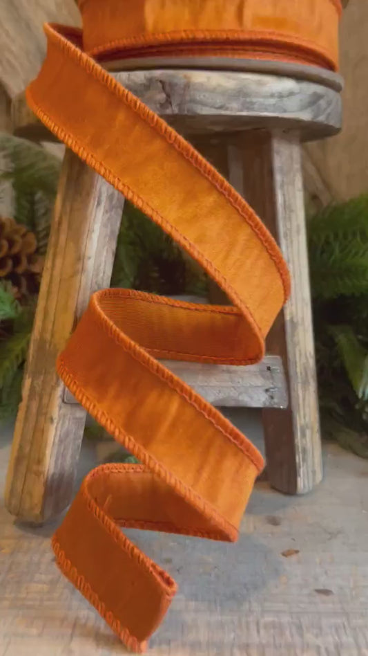 1" Orange Dupioni Ribbon, Orange Ribbon, Fall Ribbon