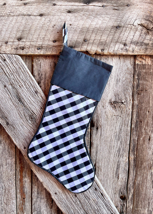 Black and white buffalo plaid stocking, Christmas stocking, stocking