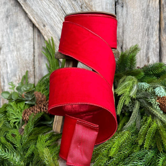 2.5" Red Velvet Ribbon, Christmas Tree Ribbon, Wreath Ribbon