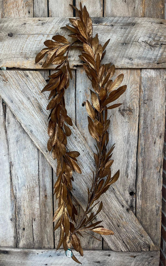 8' Copper Brown Laurel Leaf Garland, CHristmas Tree Garland, Copper Laurel Leaf