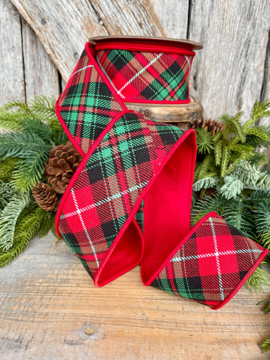 2.5" Christmas Plaid Ribbon, Red Green Plaid Ribbon, Traditional Christmas Ribbon