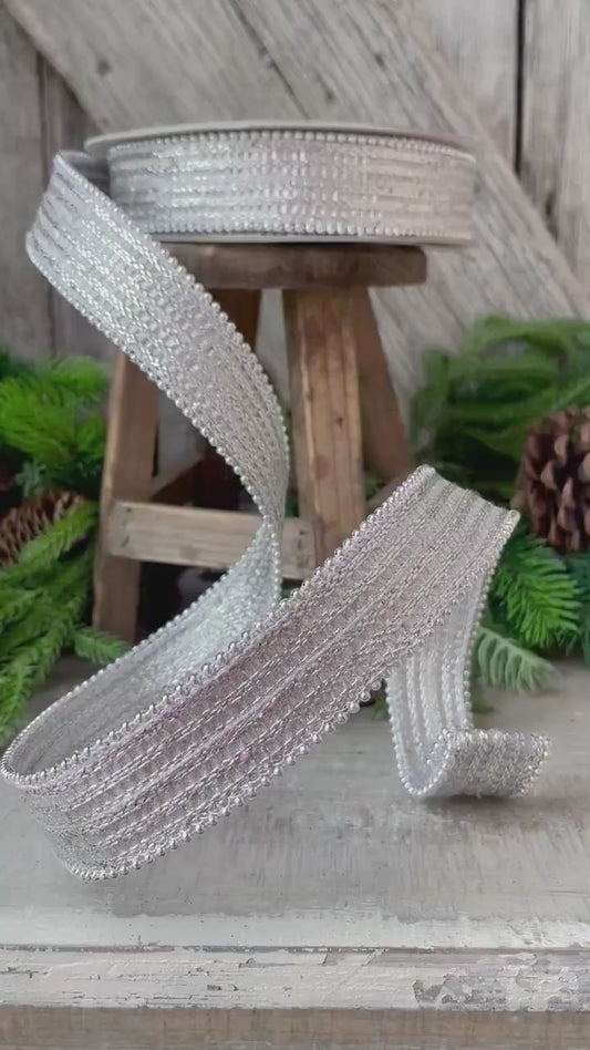 1" Silver Metallic Ribbon, Farrisilk Ribbon, Silver Metallic Jingle Ribbon