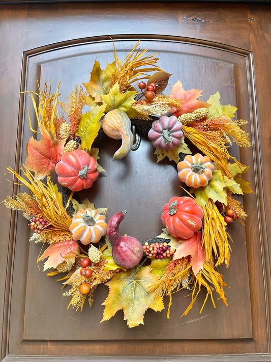 24" Pumpkin Wreath for Front Door, Fall Wreath, Fall Front Door