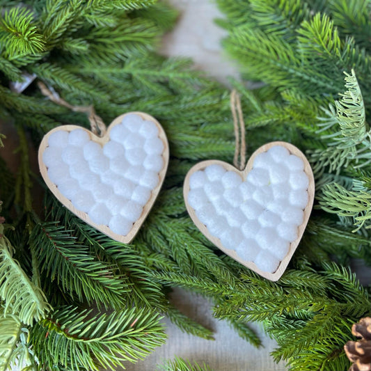 4" Heart Ornaments, Set of 2, White Heart Ornments