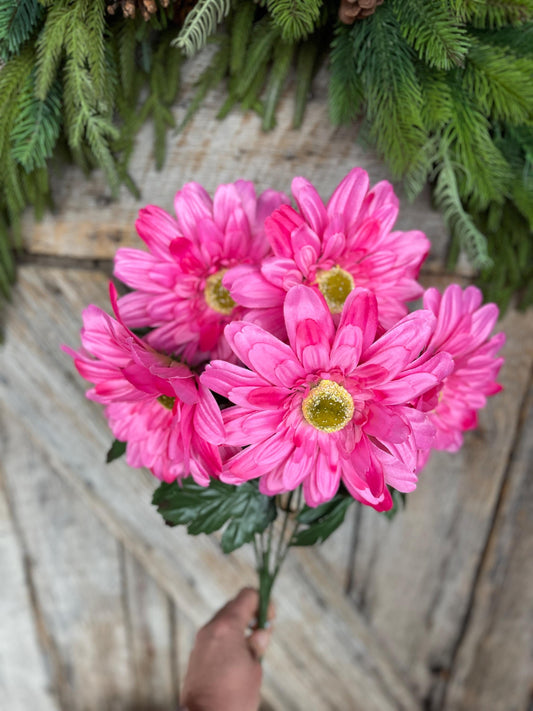 20" Hot Pink Gerber Daisy Bush, Pink Floral Spray, Artificial Daisy Bush