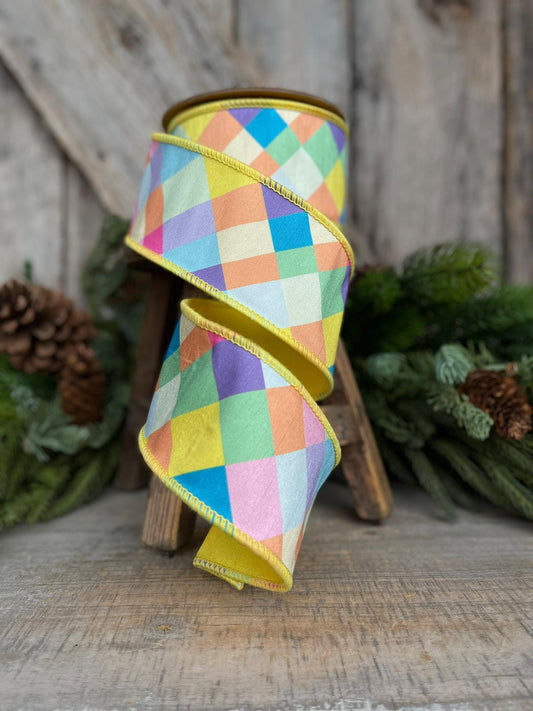 2.5" Yellow Pastel Plaid Wired Ribbon: Spring Easter Decor